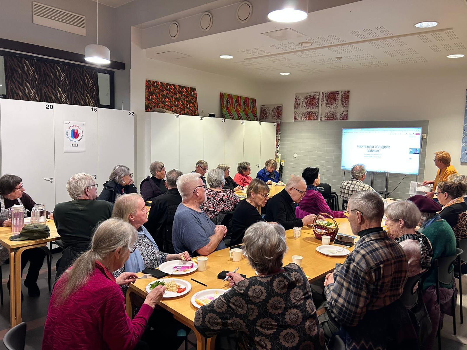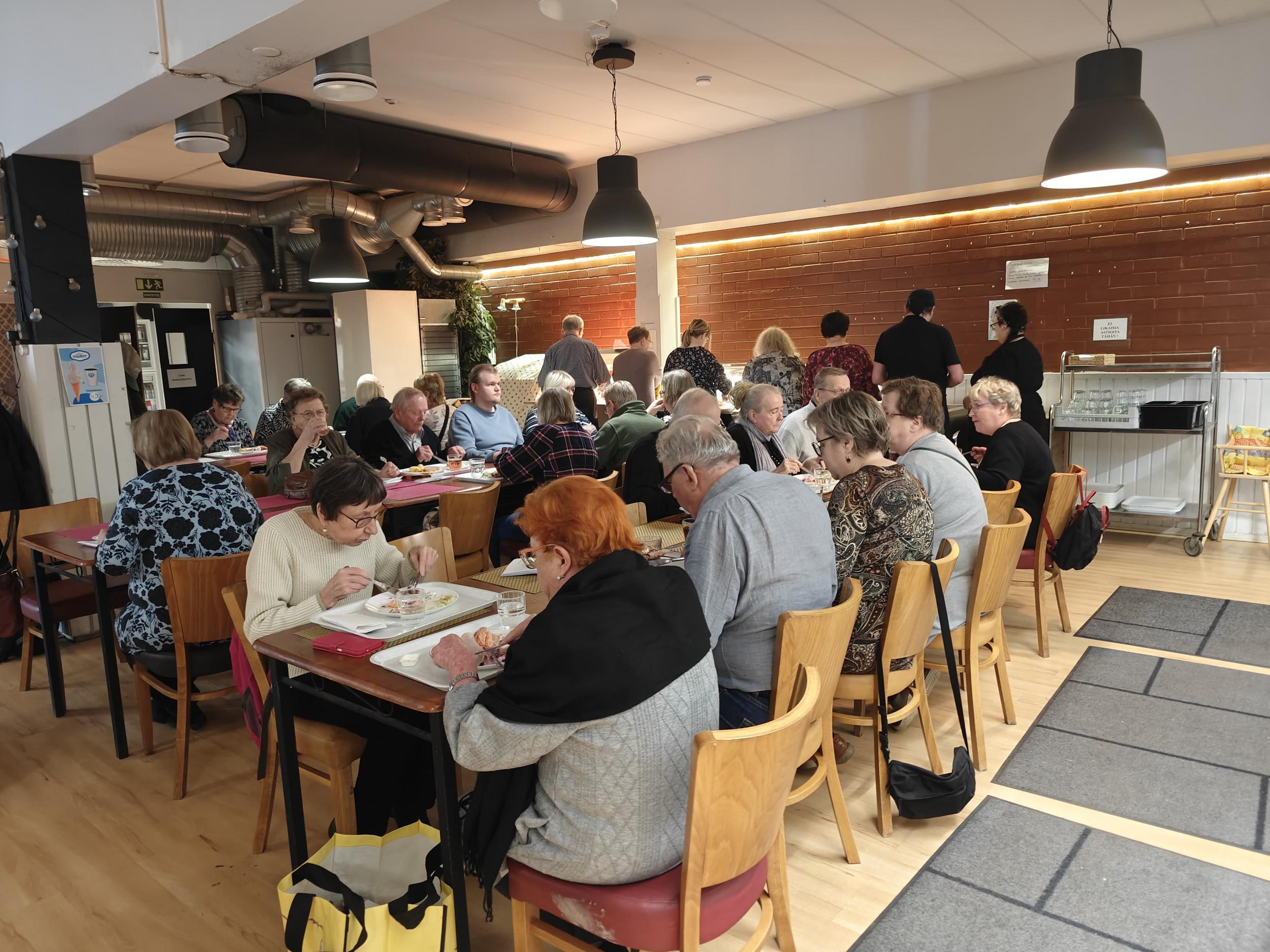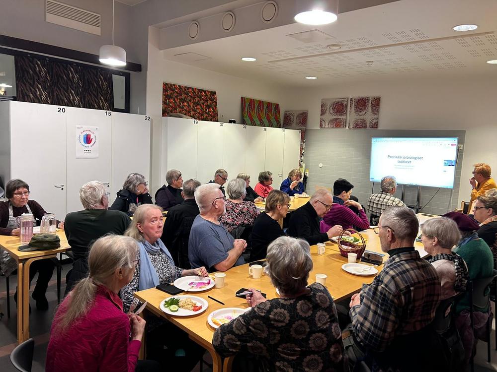 Jäsentapaaminen ensimmäistä kertaa uudessa paikassa Onnensillassa. Ilahduttavan paljon kävijöitä olikin!
