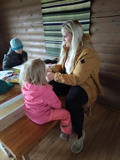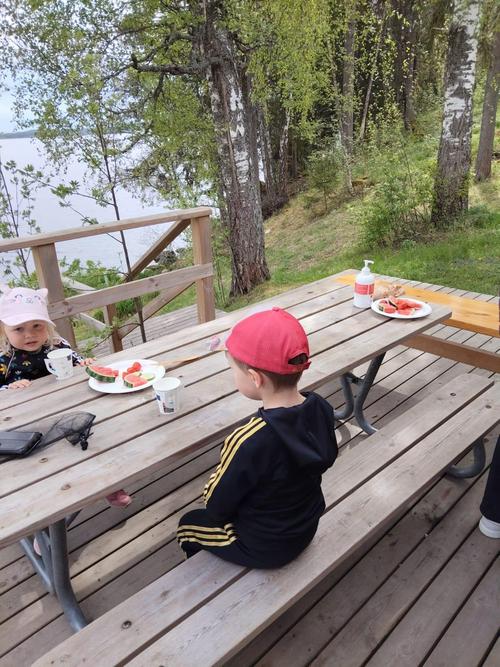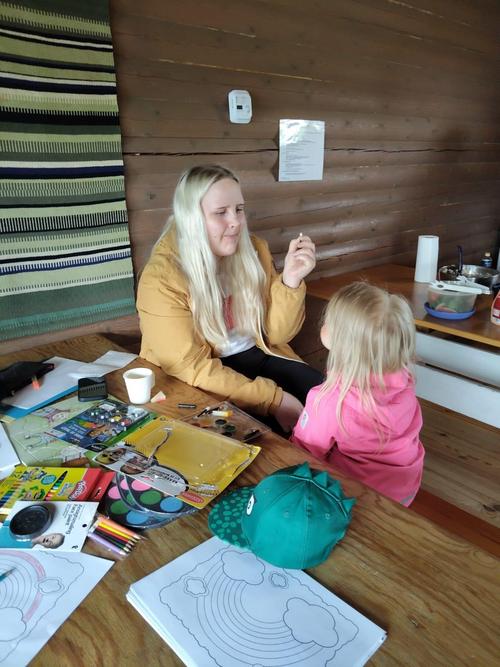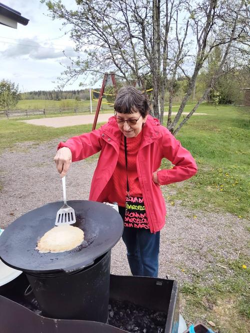 Hauska päivä Rytkön leirikeskuksessa. Ei ollut mikään helle, mutta ei myöskään satanut. Pirjo paistoi lettuja ulkona mielenkiintoisesti viritetyllä paikalla ja Nina gluteenittomia vohveleita sisällä. Makkaranpaisto oli Jonnen hommia. Janetten kasvomaalaukseen oli tunkua, kaikki kyllä pääsivät vuorollaan. Sauna oli lämmitetty ja muutama saunojakin oli. Rohkeimmat kävivät uimassa oikein useampaan kertaan. Erilaisia pelejä oli tarjolla ja lisäksi lapset itse keksivät, että kun on ranta niin kalastetaan (keppi, naru, kivi ja veteen vaan).
