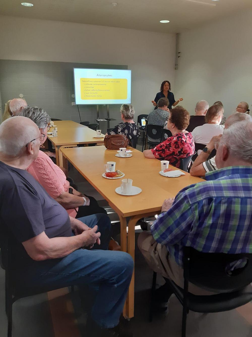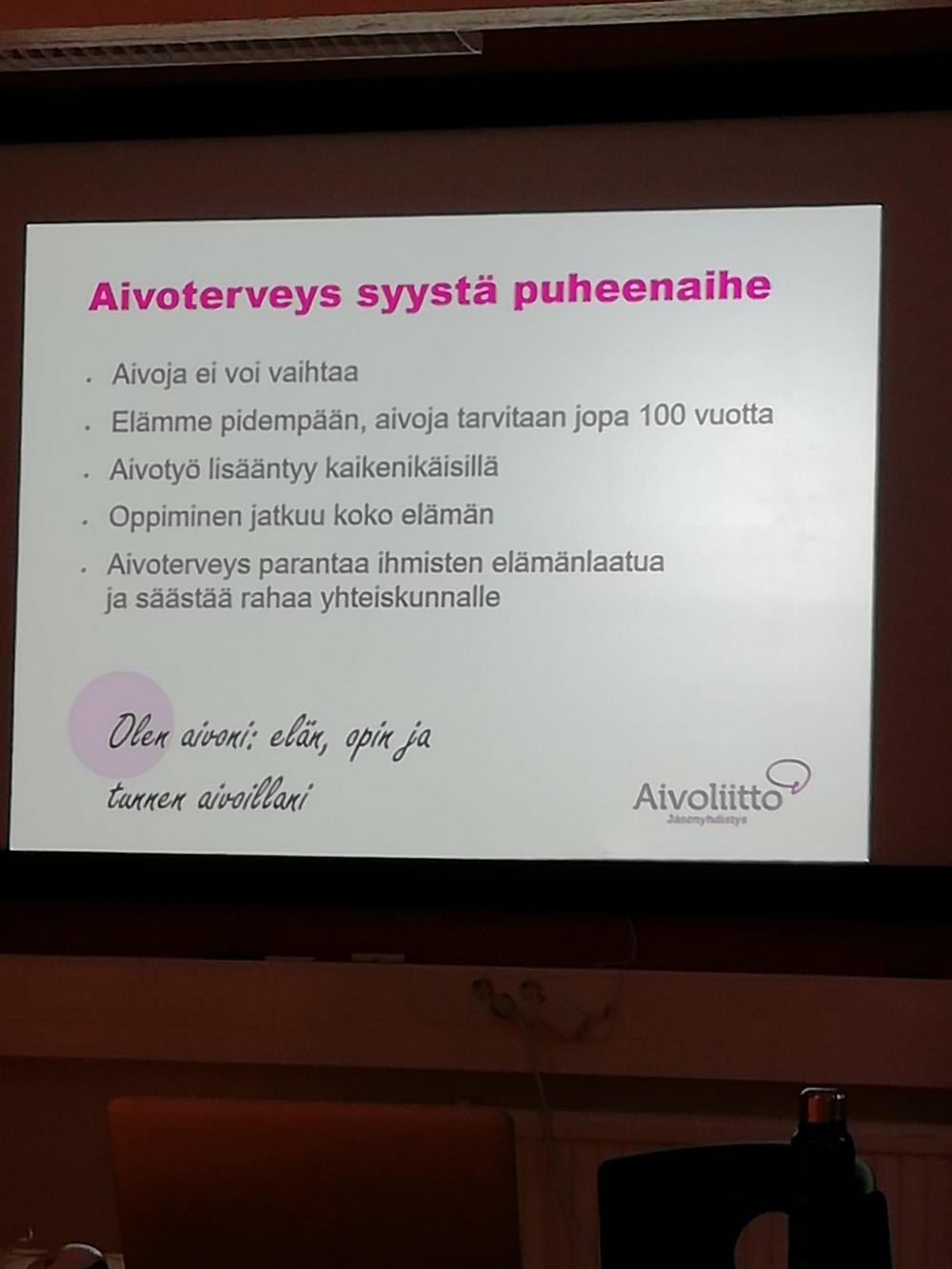 Aivoterveysosaaja Osmo Kosonen luennoi mielenkiintoisesti aivoterveydestä. Omilla valinnoilla voi vaikuttaa omien aivojensa toimintaan. Tärkeää asiaa oli kuuntelemassa innostuneita kuulijoita. Kiitos Osmo Kososelle hyvästä luennosta ja mukana olleille!
