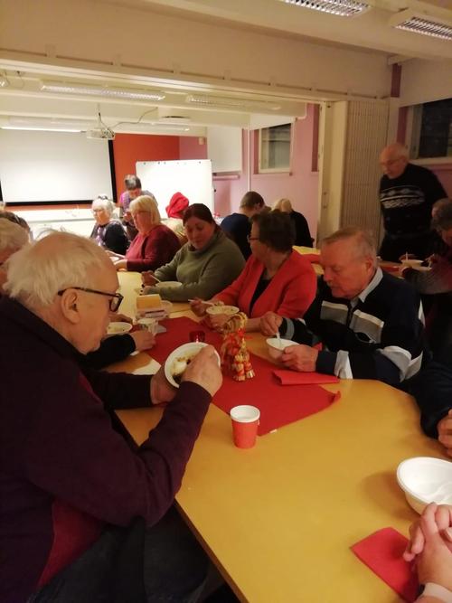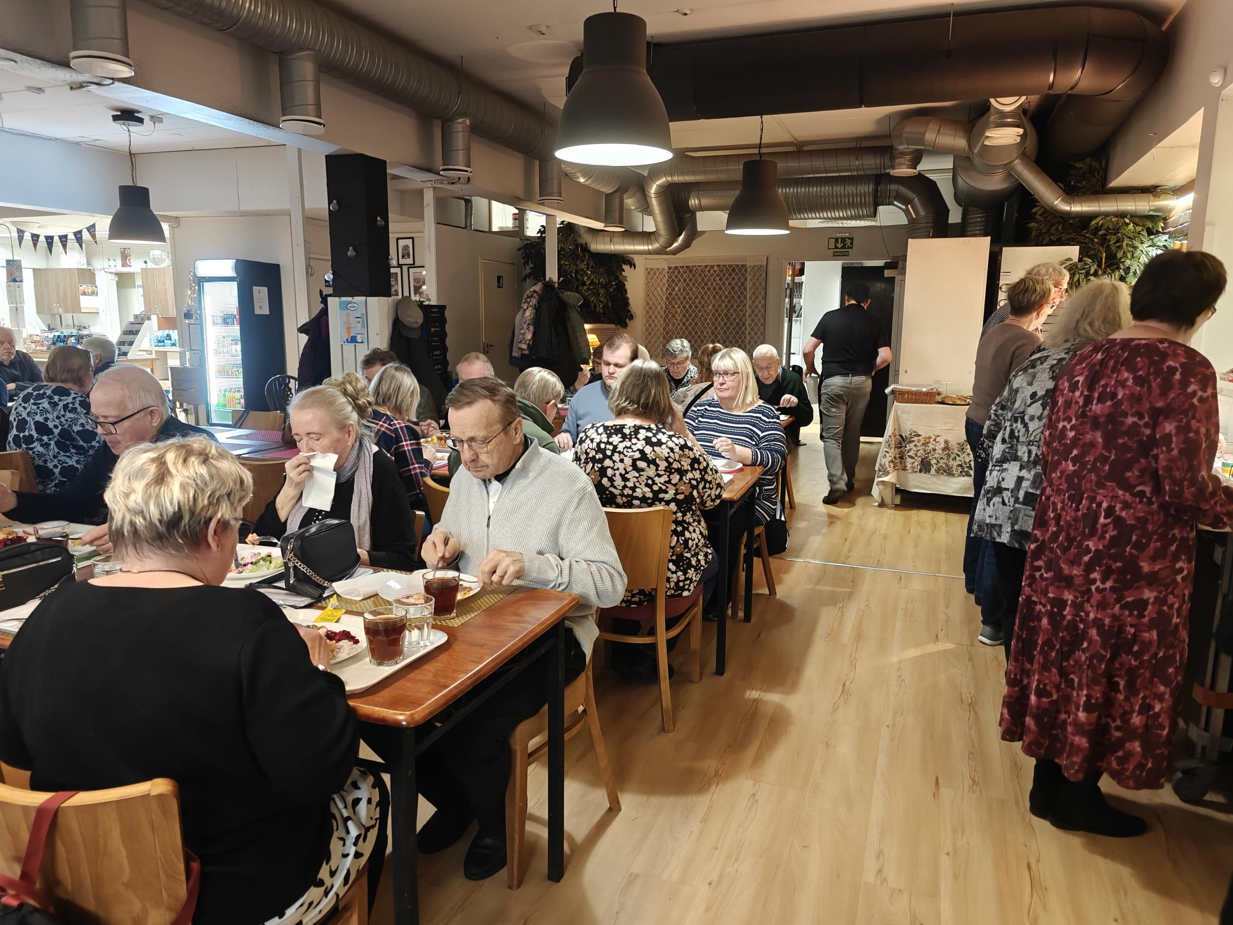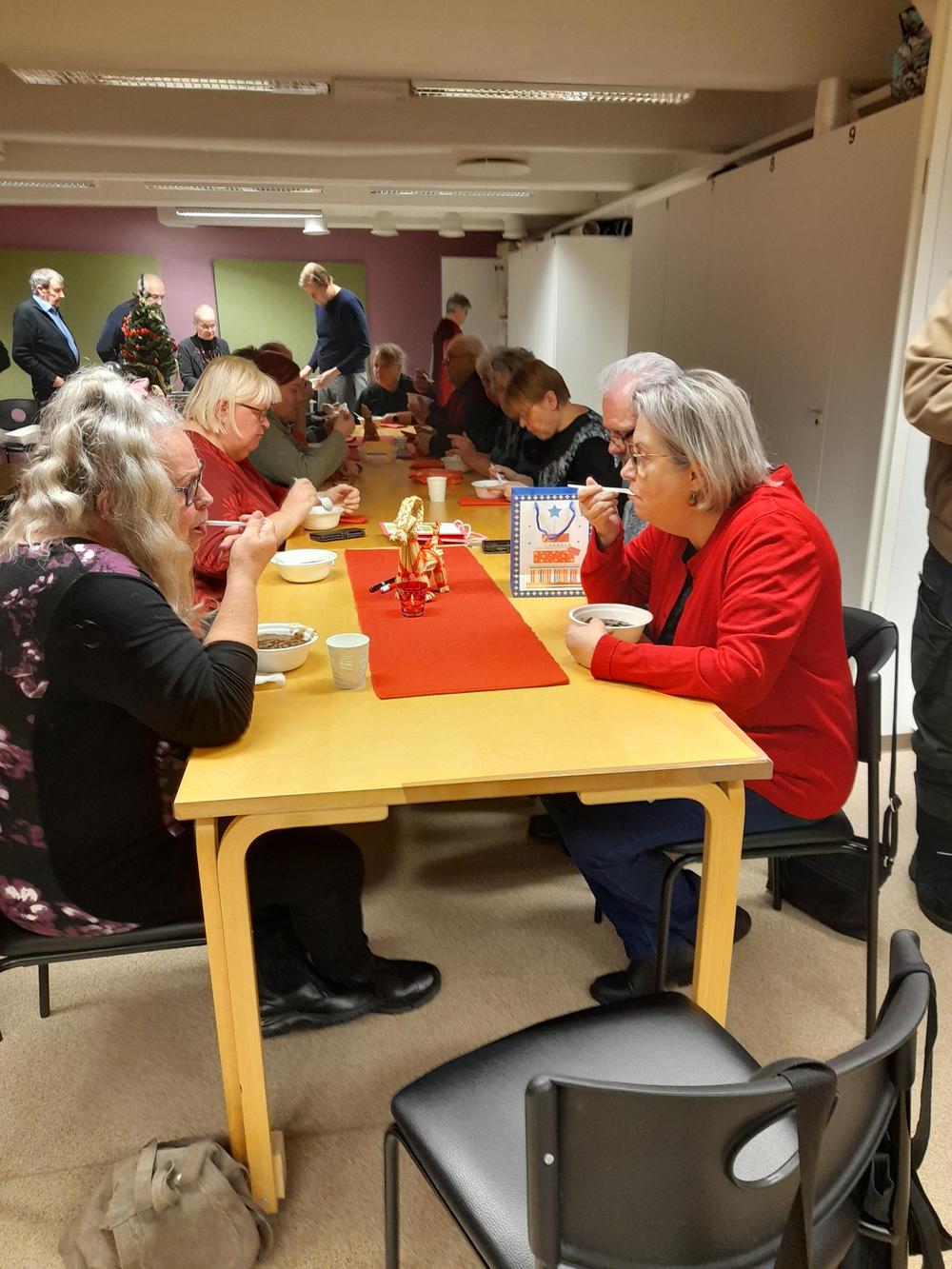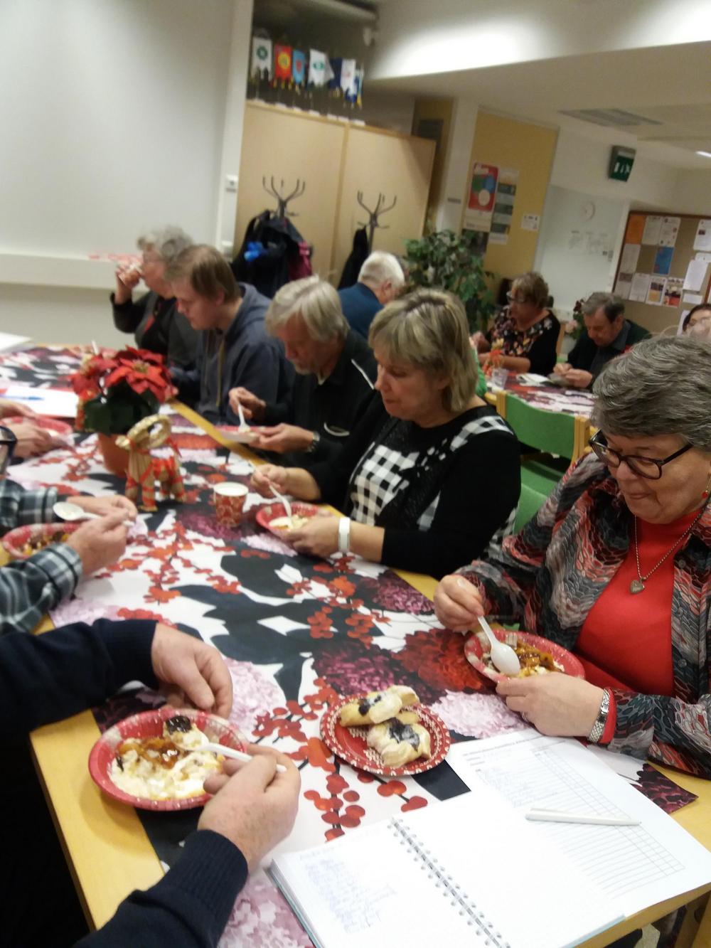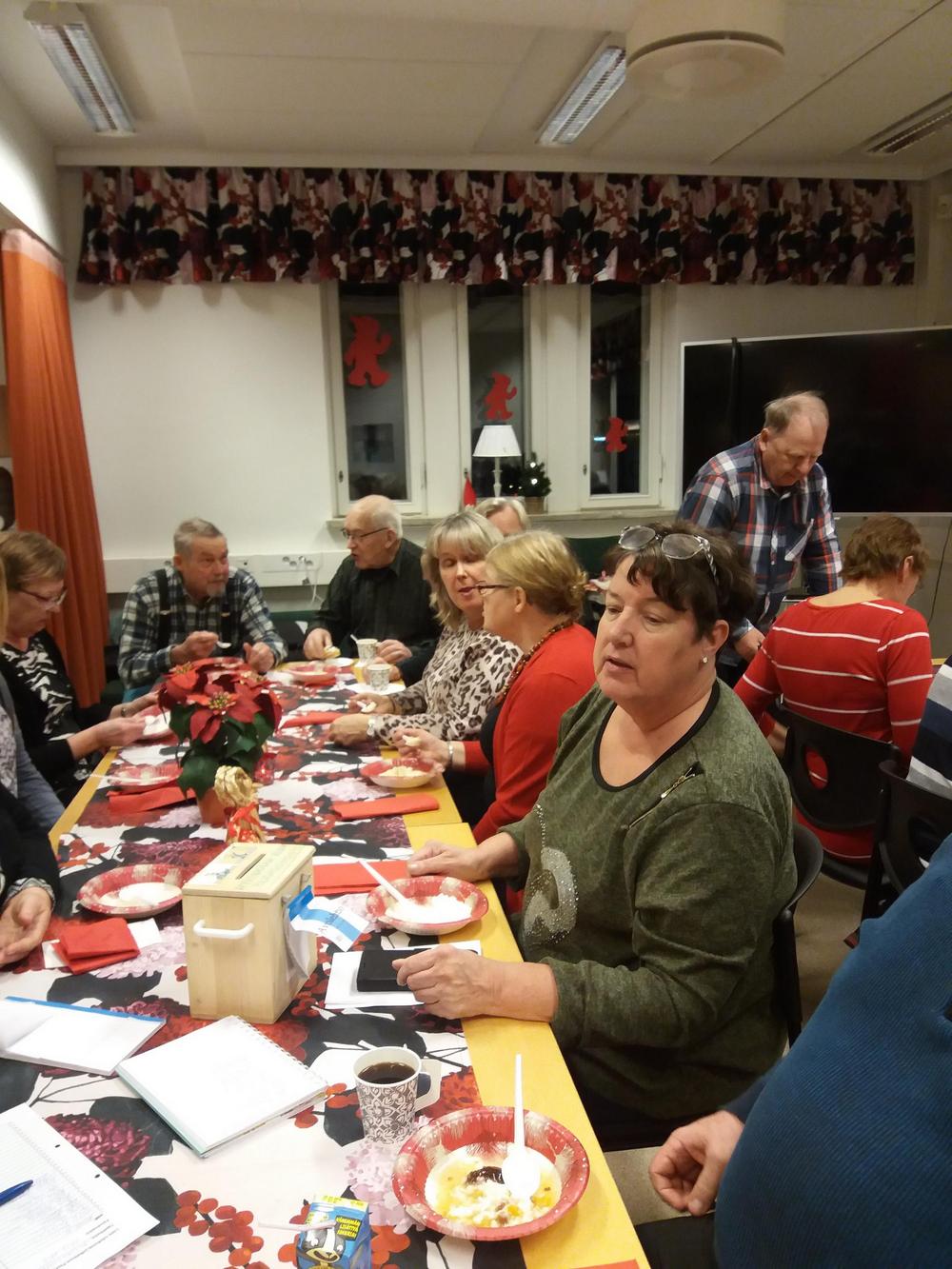 Kokouksen jälkeen 30 osallistujaa nautti maittavan Joulubuffan Paakari Puustin tiloissa. Yllätyksenä jäsenemme Seppo Lammi laulatti väkeä joululauluilla kitaran säestyksellä.