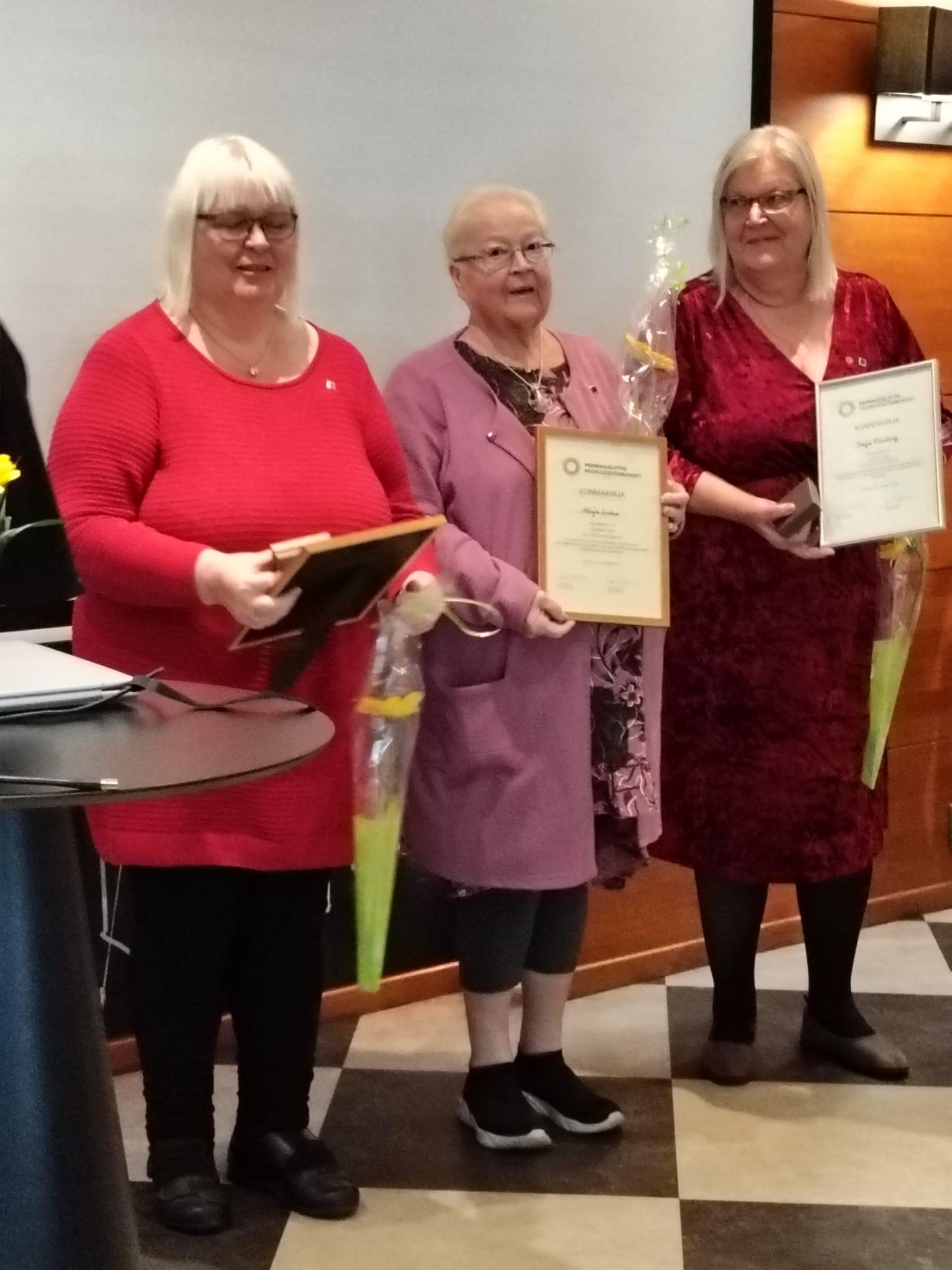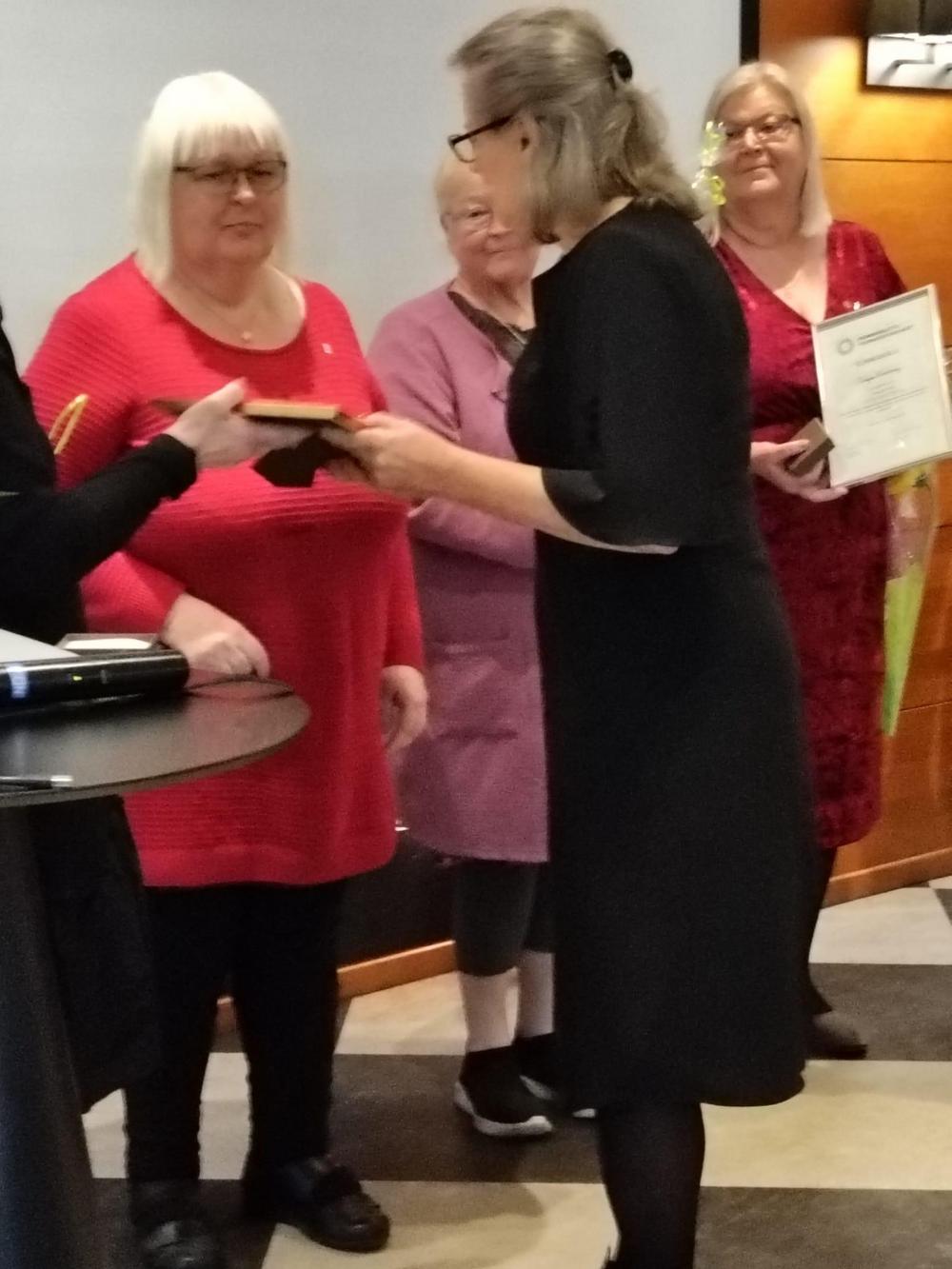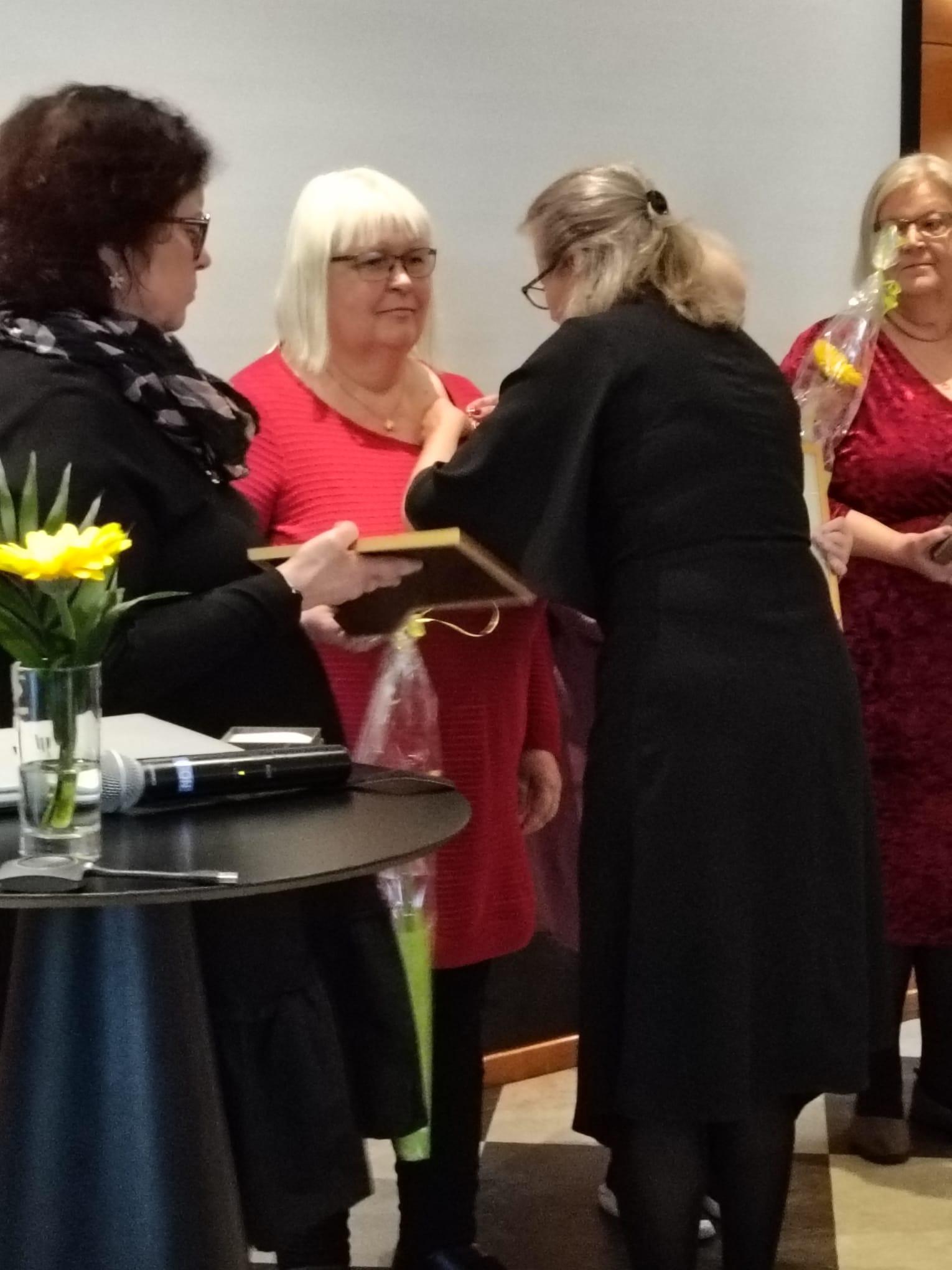 Psoriasisliiton järjestöpäivillä 3.-4.2.2024 Hyvinkään seudun Psoriasisyhdistys palkittiin vuoden 2023 yhdistyksenä. Irene Hämäläinen ja Sirpa Hurri vastaanottivat kunnianosoituksen hyvillä mielin. Lämmin kiitos teille kaikille, jotka olette osallistuneet tapahtumiimme ja kulkeneet mukanamme vaikka viime vuonna tulipalon takia menetimme tutun kokoontumispaikkamme. Toivottavasti näemme myös tämän vuoden menoissa.