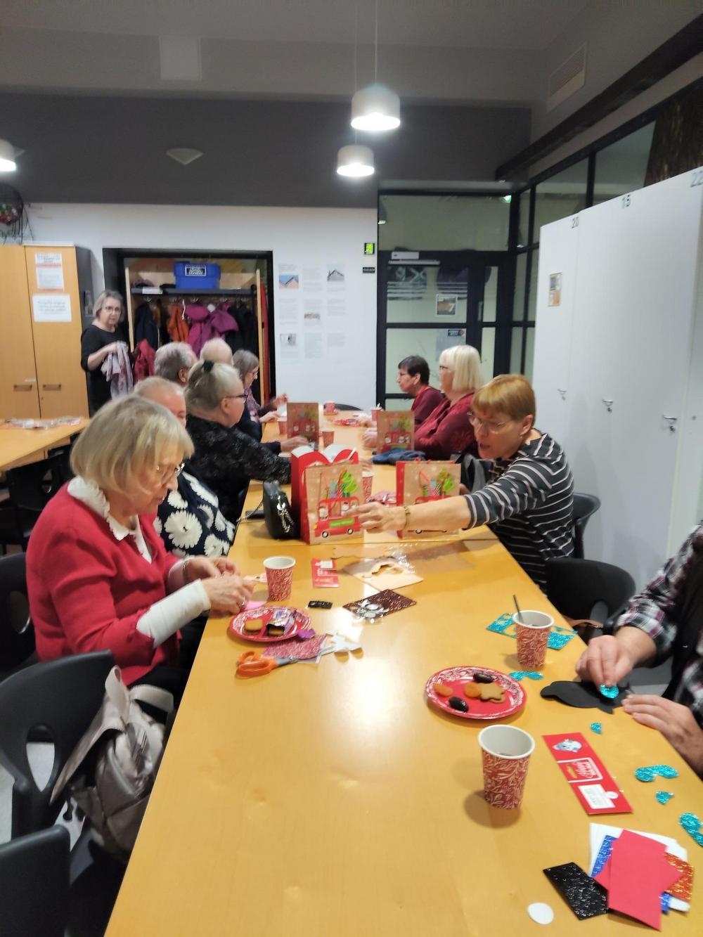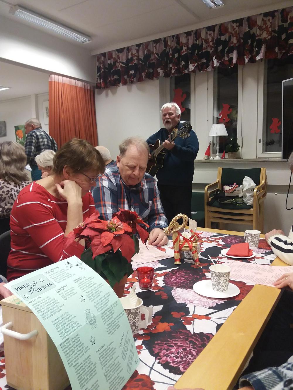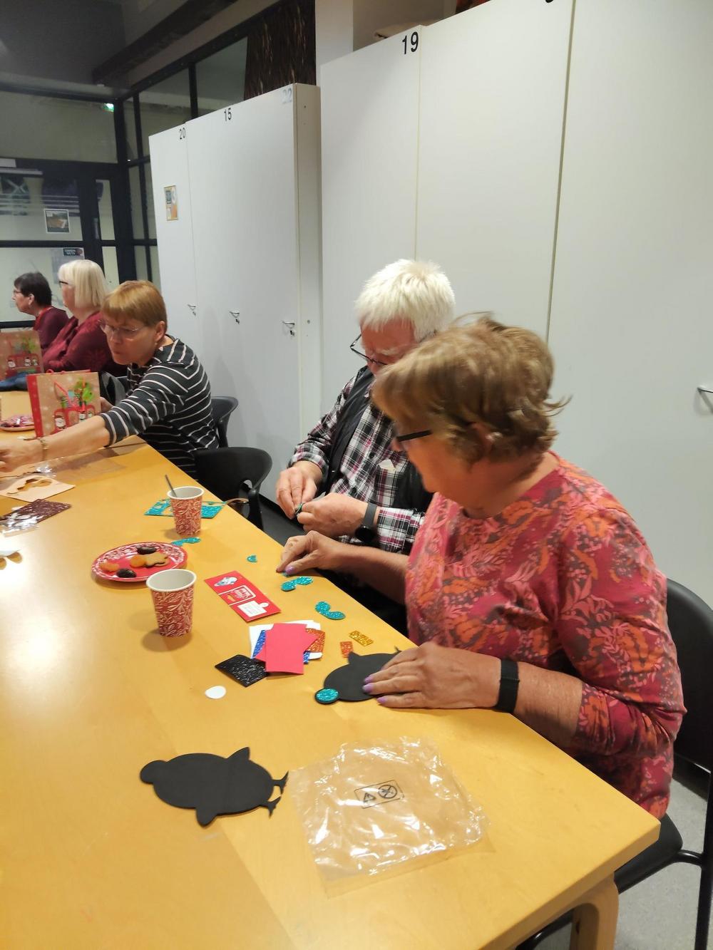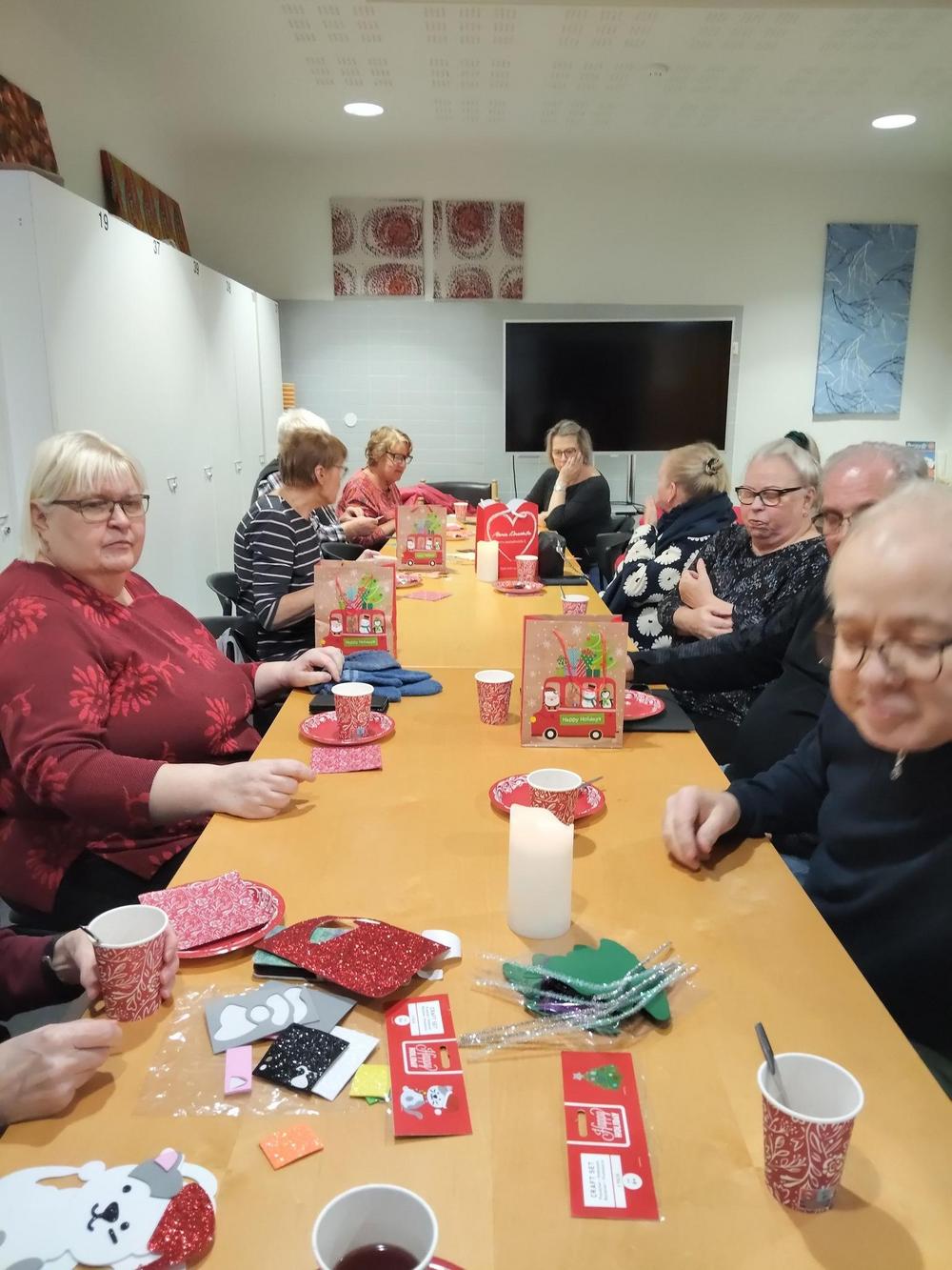 Myös uusia tulevia halllitusjäseniä oli paikalla. Joulukorttien askartelu olikin aika menestys ja se oli ihan kiva heittäytyminen. Trubaduuri Seppo Lammi myös johdatti meitä joululaulujen tunnelmiin. Lämmin kiitos taas kerran Sepolle ja muille mukana olleille