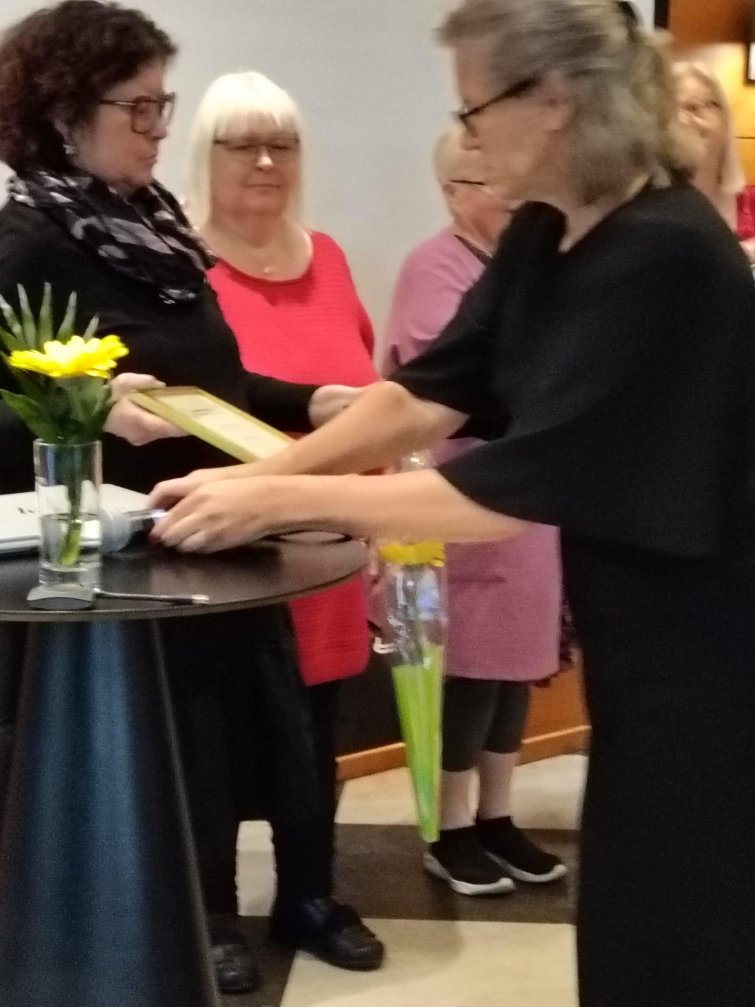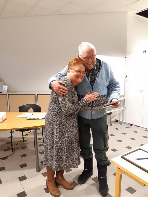 Kevätkokouksessa yllätettiin Erkki Paloniemi kunniakirjalla. Hän on yksi yhdistyksen perustajajäsenistä ja tehnyt "pitkän päivätyön" hallituksen jäsenenä. Kiitos!