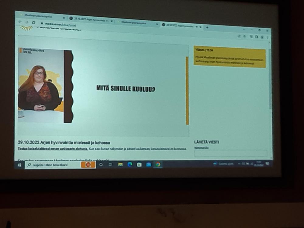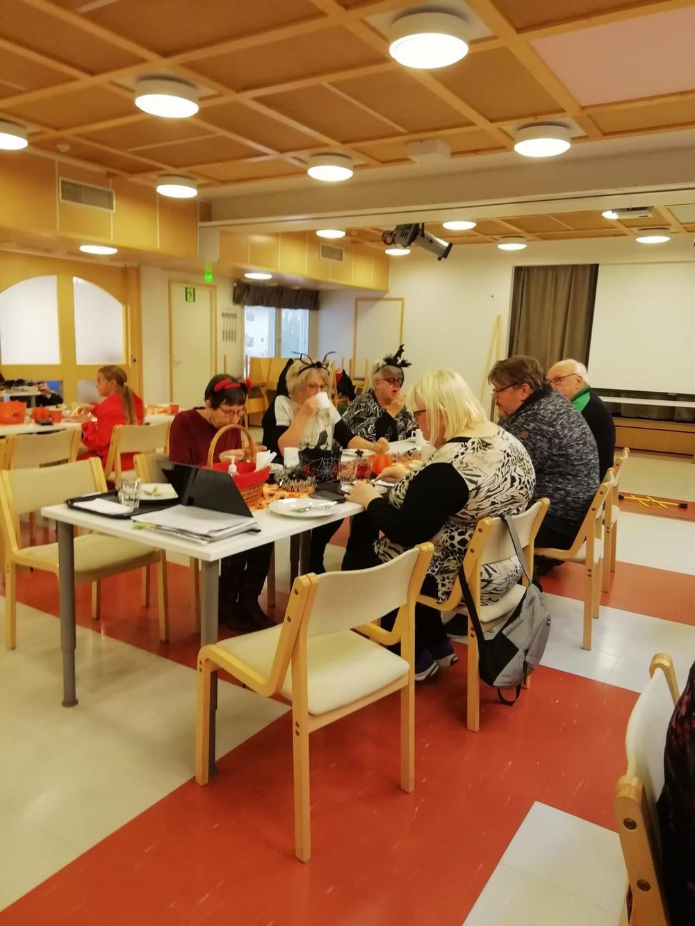 Tänä vuonna Maailman psoriasispäivää vietettiinkin halloween-teemalla Onnensillassa. Kahviteltiin ja nautittiin pöydän antimista. Hyvissä ajoin viritettiin näyttö valmiiksi ja katsottin yhdessä Psoriasisliiton webinaari: Arjen hyvinvointia mielessä ja kehossa. Vietettiin mukava iltapäivä. Kiitos mukana olleille!
