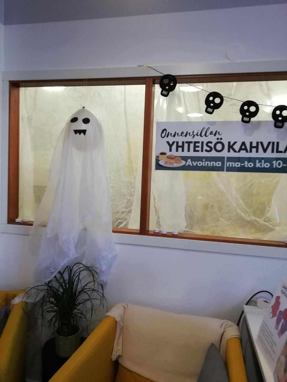 Maailman psoriasispäivää vietettiin Onnensillan kahvilassa HyviPsorin kahvilavuorolla halloween aikaan sopien kummitusteemalla .