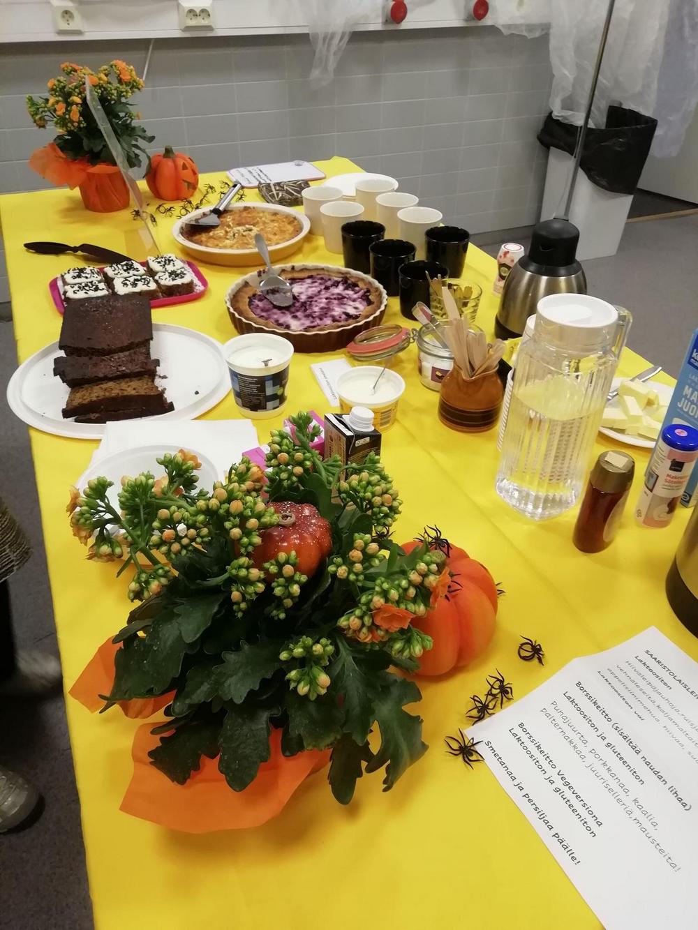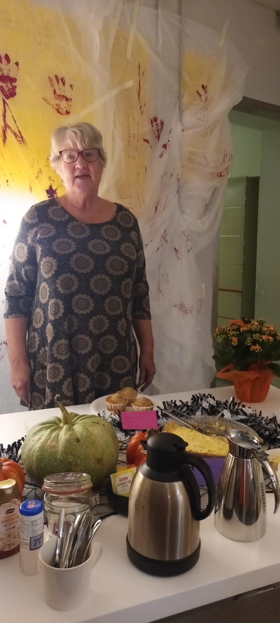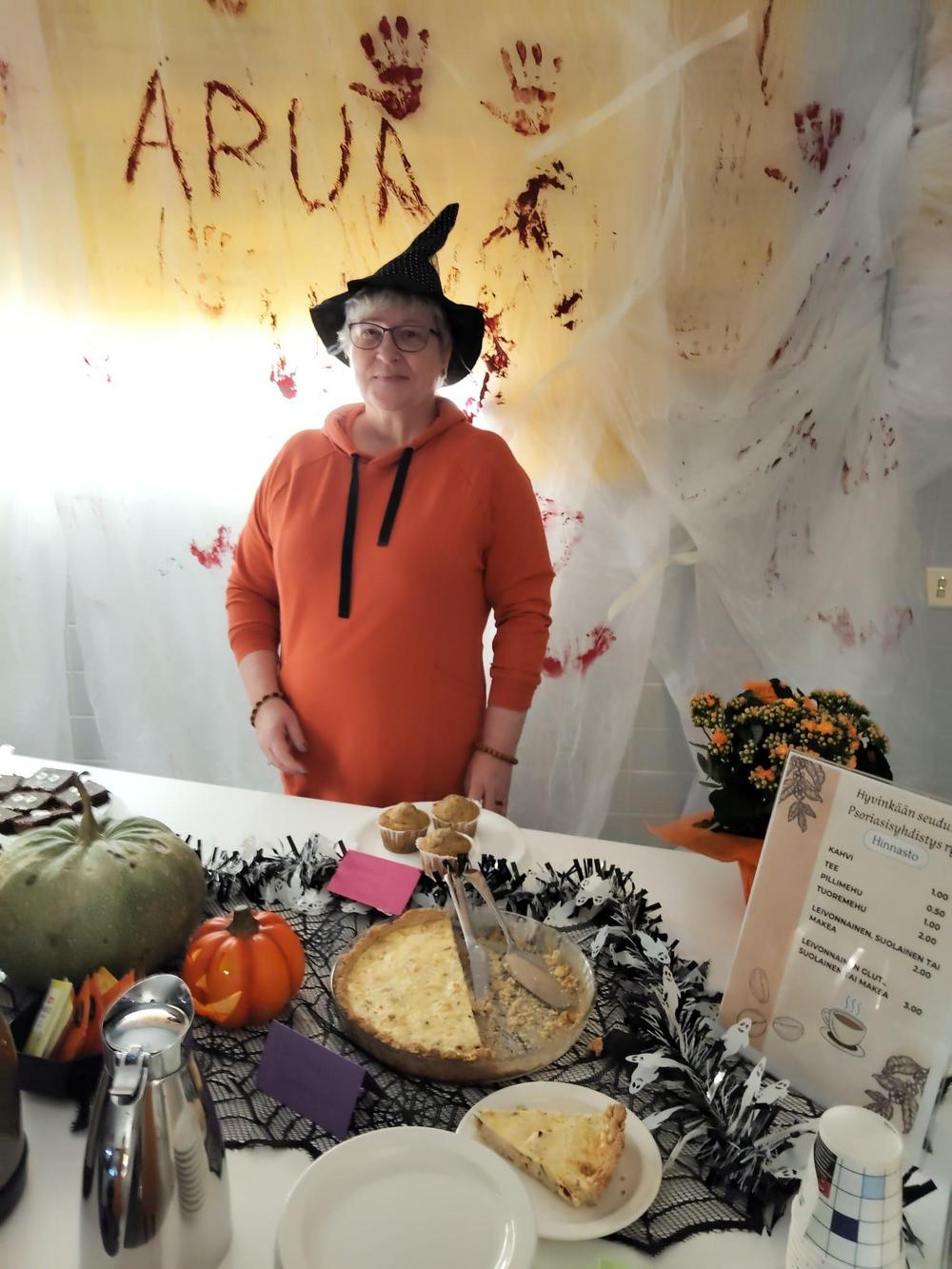 Maailman psoriasispäivää vietettiin iloisissa merkeissä halloween teemalla Onnensillan yleisökahvilassa yhdistyksemme kahvilavuorolla. Tarjolla oli Irenen tekemää herkullista borssikeittoa myöskin Irenen tekemän saaristolaisleivän kera. Jälkiruuaksi voi ostaa kahvia ja omatekoisia leivonnaisia. Nelisenkymmentä keittoannosta meni.
