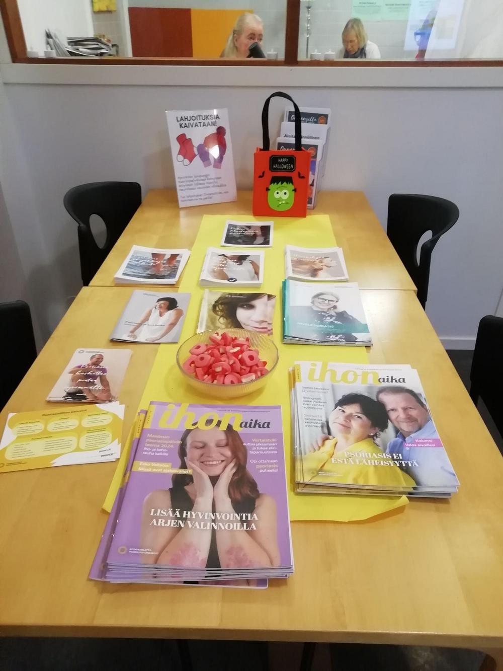 OLKA-pisteellä 27.10.2025 Maailman psoriasispäivän tiimoilta olimme taas jakamassa tietoa. Ihania kohtaamisia. Kaiken kaikkiaan 95 pysähtyi kohdallamme, sairaalassa kävijöitä ja myös henkilökuntaa. Jaoimme esitteitä ja Ihon aika lehteä. Tuorein liiton 50-vuotisjuhlanumero loppui kesken. Kiitos OLKA-piste ja ihanat ihmiset. Toivottavasti nähdään taas keväällä psoriviikolla.
