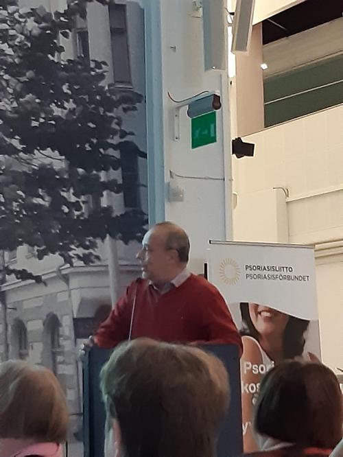 Ihotautien ja allergologian erikoislääkäri Rafael Pasternack kertoi ensin psoriasiksen historiaa siirtyen nykypäivään ja uusiin tuuliin. Todella mielenkiintoinen luento.