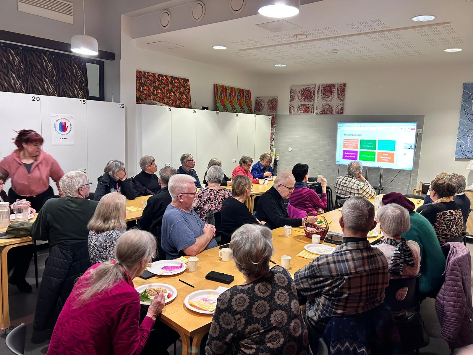 Olipa taas mukava iloinen puheensorina Onnensillassa. Järjestösuunnittelija Kirsti Karttunen esitteli järjestöjen sosiaaliturvaopasta. Sosiaaliturvan tietovisa 2023 pisti meidät miettimään tiedämmekö mitään. No toiset tiesi enemmän ja toiset vähemmän. Kiitos Kirstille mielenkiintoisesta visailusta. Virallinen kokous saatiin hoidettua asianmukaisesti. Kotiin lähdettiin hyvillä mielin seuraavaa tapaamista odotellen. Kiitos mukana olleille! 🤗